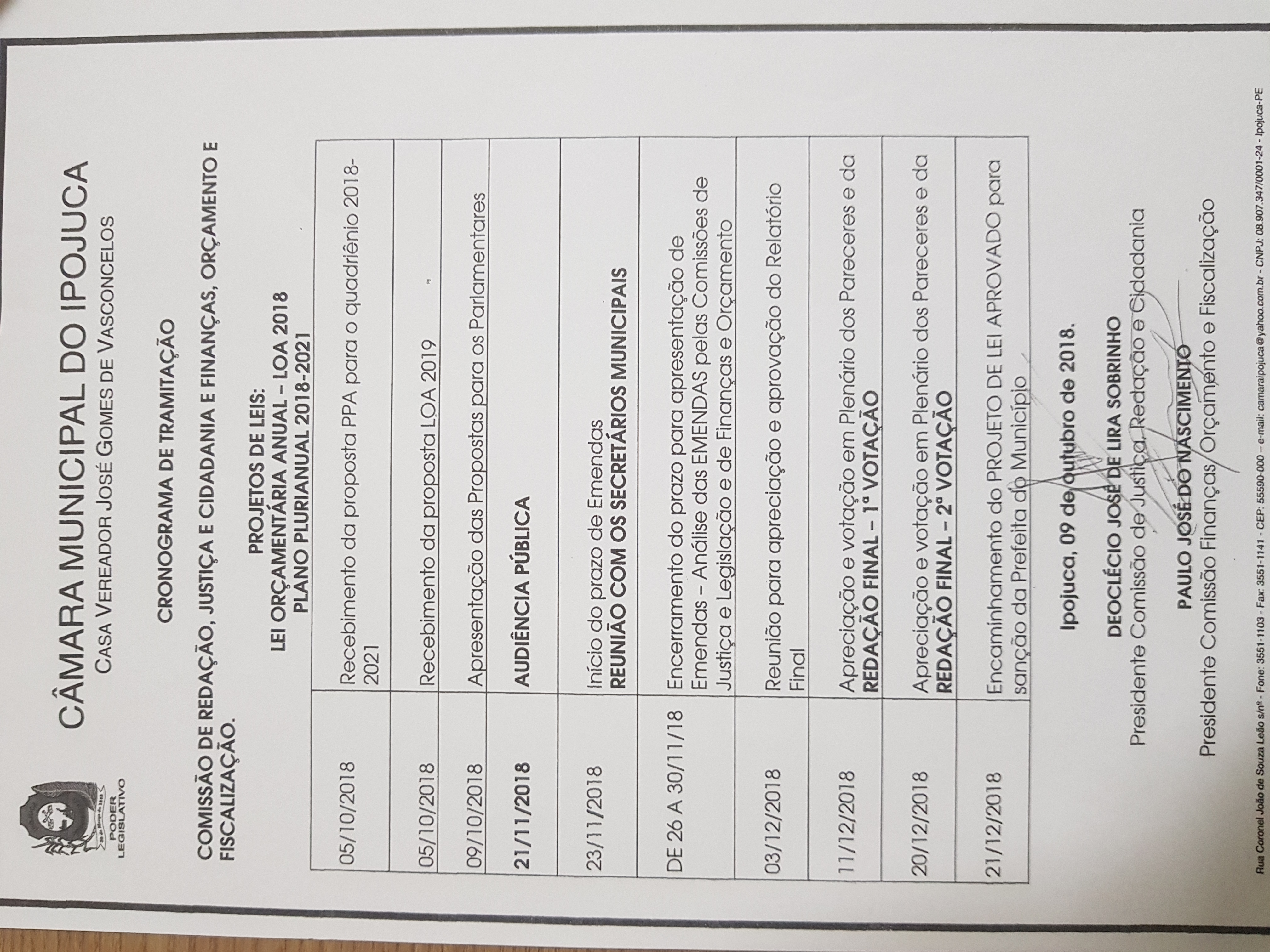 Câmara Votará LOA e PPA, confira o cronograma. 09/11/2018 admin Deixe um comentário A Câmara Municipal do Ipojuca, até o final do ano, votará a Lei Orçamentária Anual referente ao exercício de 2019 e o Plano Plurianual para os próximos 4 anos. Confira o cronograma. Navegação de Post Post anteriorPonto FacultativoPróximo postCâmara receberá Audiência Pública da Saúde.
